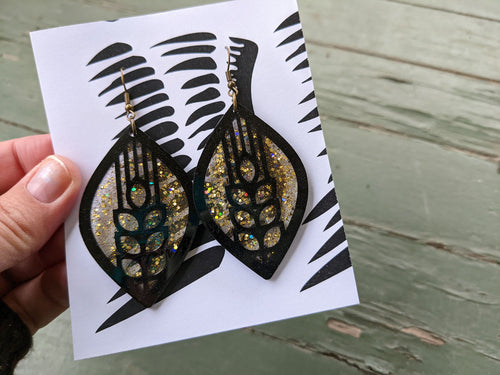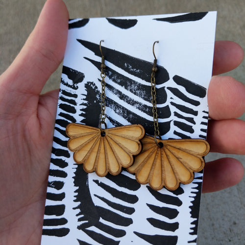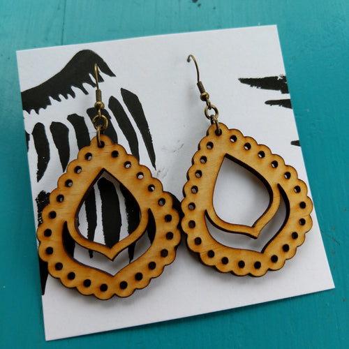 Grains of Wheat, lasercut earrings in lightweight birch wood