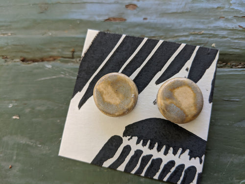 Handmade Ceramic Earrings, Green Glaze with Hints of Blue and Golden-Brown