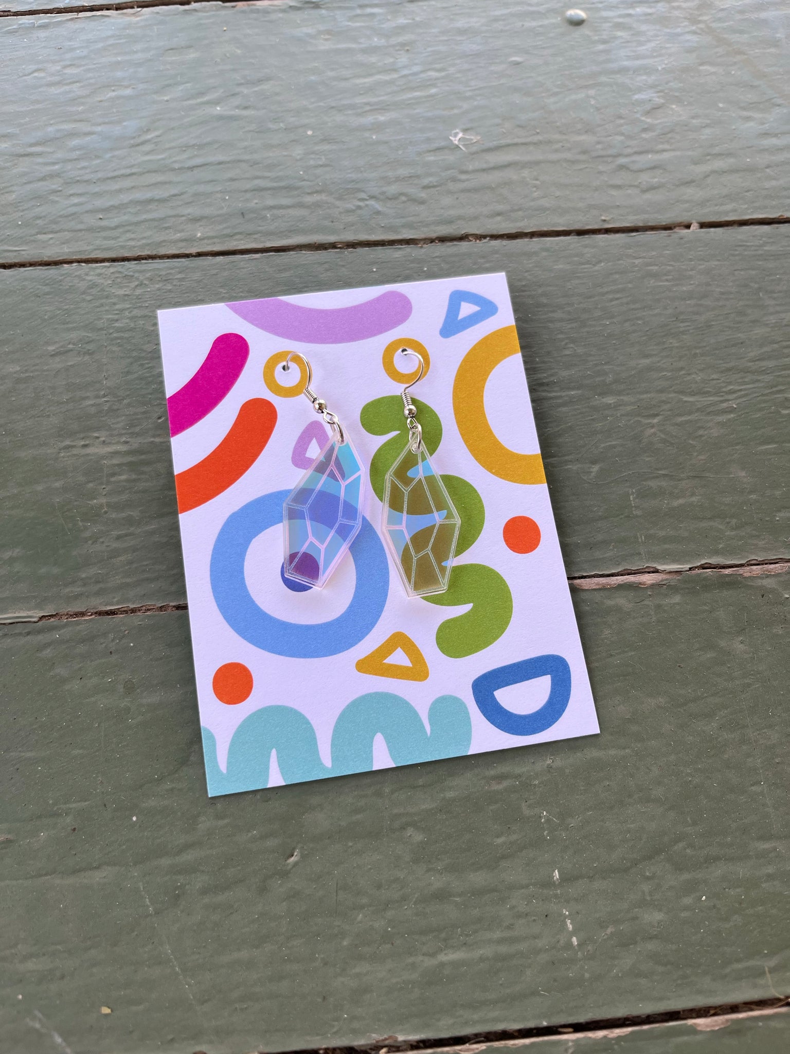 deer sara teamed up with Joy Corps for these exclusive faceted crystal design earrings, laser cut and laser etched in iridescent acrylic, small.